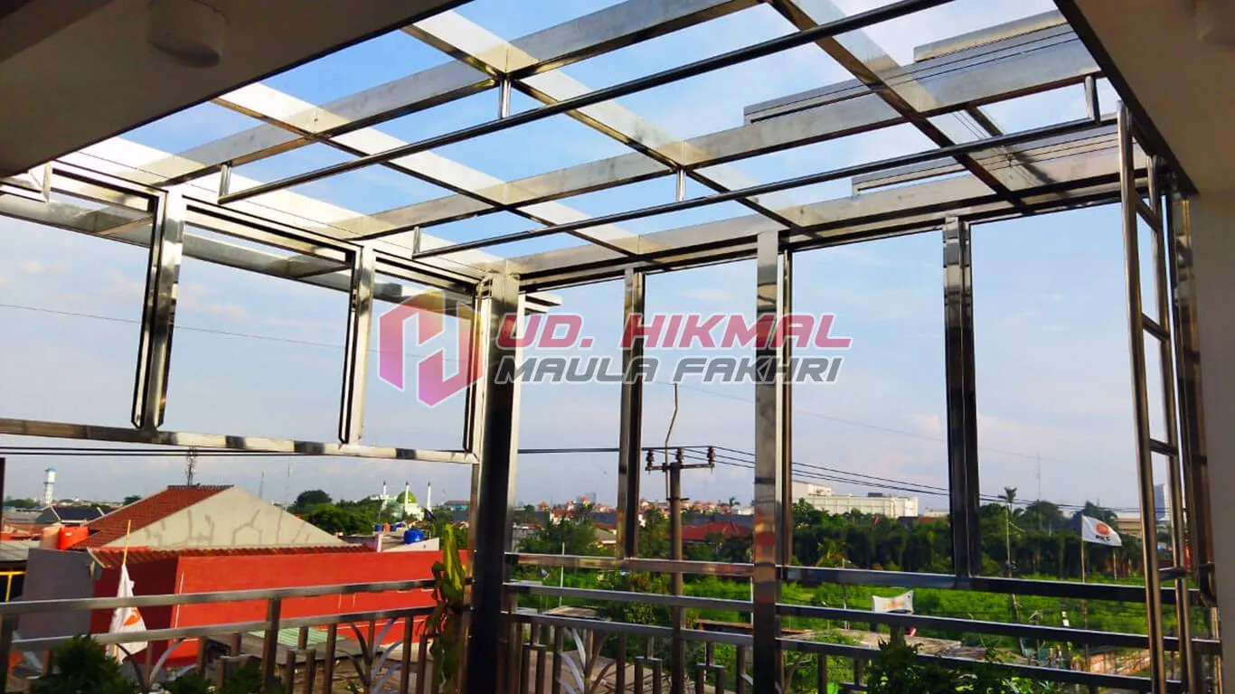 Canopy stainless memberikan perlindungan serta memperindah bangunan. Dibuat dari material pilihan dengan finishing rapi, canopy kami tahan lama dan tahan cuaca. Solusi modern untuk hunian maupun area bisnis yang mengutamakan keindahan dan fungsi.