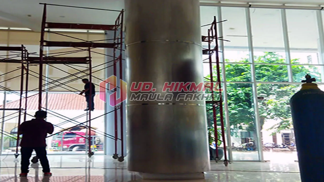 Cover tiang stainless kami memberikan sentuhan modern pada struktur tiang. Menggunakan material stainless berkualitas yang tahan karat, mudah dirawat, dan tetap terlihat elegan seiring waktu. Cocok diaplikasikan pada rumah, kantor, hotel, dan bangunan komersil seperti bandara untuk memperkuat kesan mewah dan profesional.