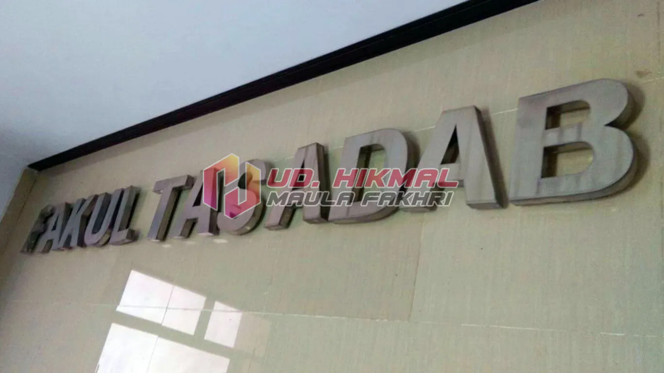 Huruf stainless adalah cara elegan untuk menonjolkan identitas bisnis Anda. Dengan finishing mengkilap, tahan karat, dan desain modern, huruf ini memberikan kesan mewah sekaligus profesional. Cocok untuk signage toko, kantor, hotel, restoran, atau gedung komersial yang ingin tampil beda dan lebih berkelas.