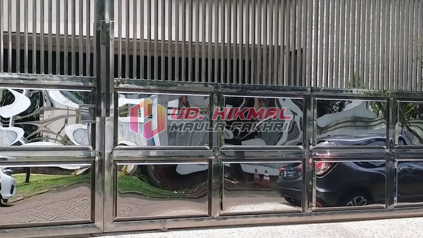 Pagar stainless yang kami buat dirancang untuk mempercantik tampilan sekaligus menghadirkan keamanan bangunan. Dengan material anti karat dan desain modern, pagar ini kuat, dan menambah nilai estetika. Cocok untuk rumah tinggal, kantor, maupun area komersial.